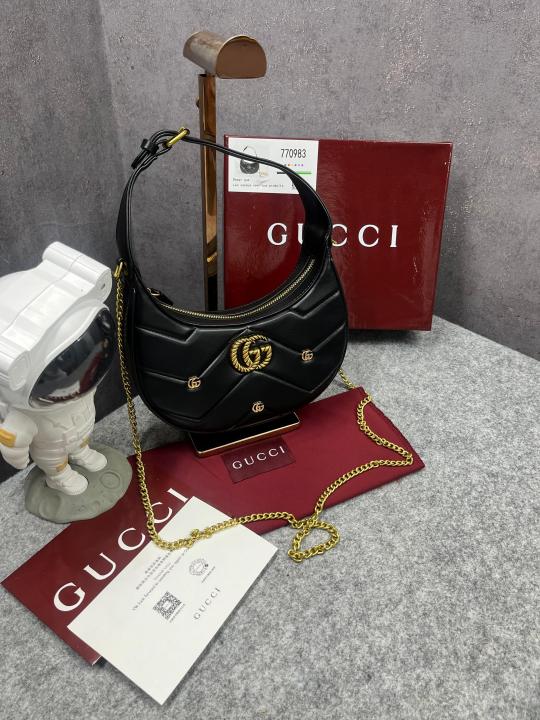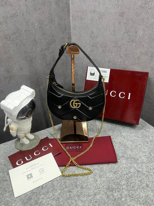 Gucci_GG_Marmont_Half-Moon_Shaped_Black_Calfskin_Gold_Hardware_Black_770983_With_OG_Red_Box_&_Dust_Bag